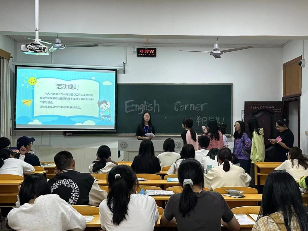 为提高同学们的口语表达能力、丰富学生的课余生活,10月17日晚7点30分,beats365唯一官方网站以及其他学院30多位23级新生参加了由学习部与飞翔英语俱乐部共同主办的英语角活动,英语教研室姚岱奕老师到场进行了指导和交流。