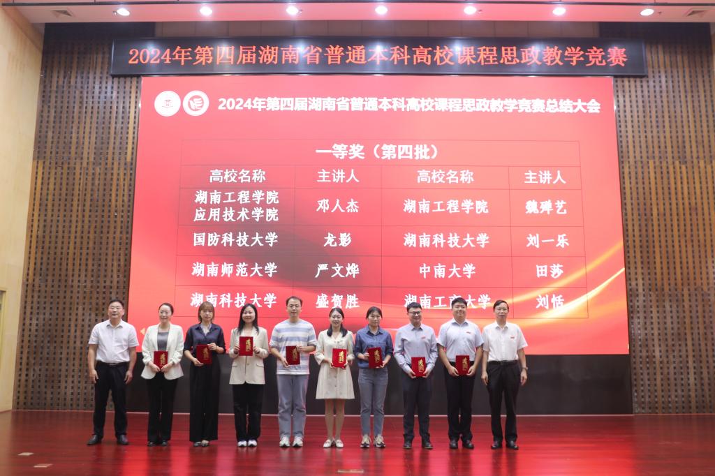 92123日,由湖南省教育厅主办的2024年湖南省普通高校教师课程思政教学竞赛圆满落下帷幕。来自湖南省各高校的90个教学团队同台竞技,经过激烈的角逐,beats365唯一官方网站魏殚艺教师团队凭借精湛的教学技艺和深厚的学术功底脱颖而出,荣获一等奖。