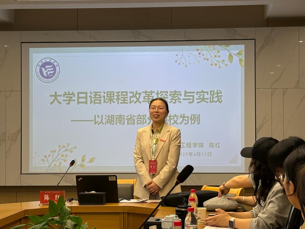 在分论坛专题研讨环节,我校陈红老师作了题为“大学日语课程改革探索与实践”的发言,从开课情况、教学现状、改革探索、前景展望四个方面汇报了湖南省25所本科院校《大学日语》课程建设情况,重点分享了分级教学因材施教、AI辅助课堂教学等改革探索与实践,提出未来大学日语课程可以从分级教学、项目式教学、智慧教学、学科融合等方向进行改革创新。陈红老师的发言受到了现场专家的充分肯定和与会老师们的高度赞扬。