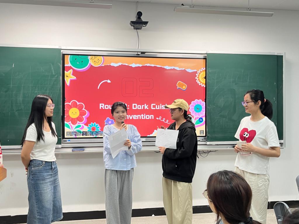 “犀利评委战”环节将气氛推至高潮。各组用地道英文对其他组“菜品”进行犀利点评,如“This is what happens when aliens try to cook.”等金句频出,妙语连珠。既锻炼了英语表达,又增进了团队合作。