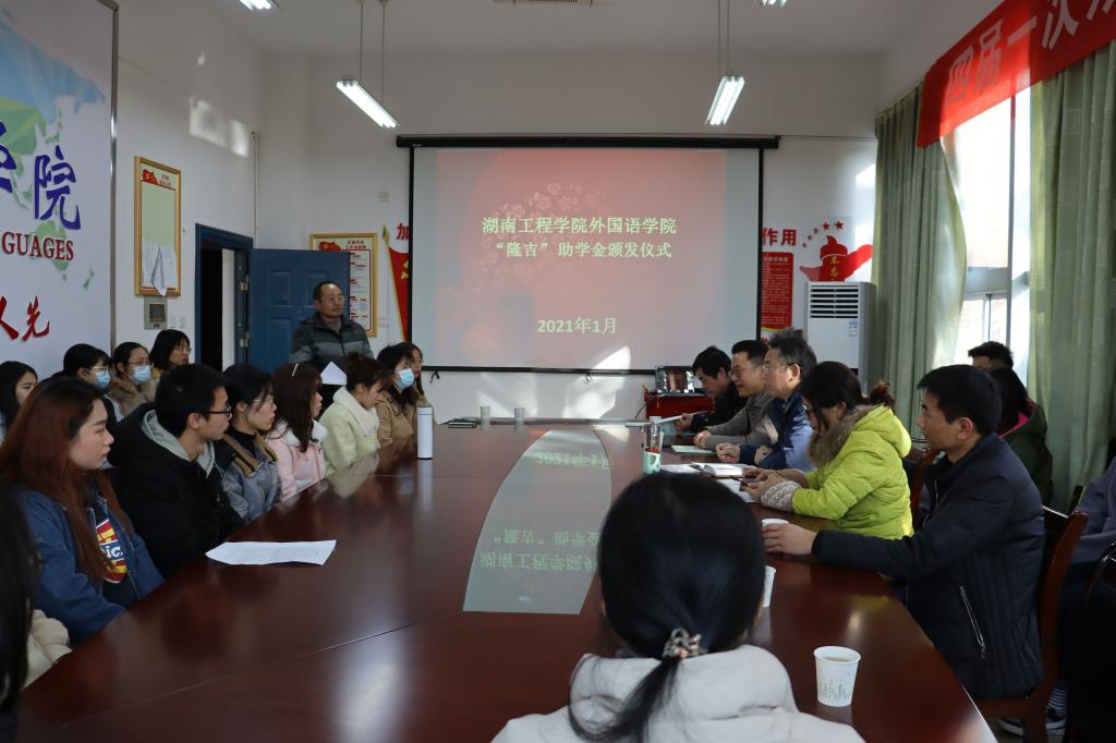 1月13日下午3点,我院于F119举办了隆吉助学金颁发仪式。本次颁奖仪式由党总支副书记罗望阳主持,校友办主任陶宏、beats365唯一官方网站院长杨永和、党总支书记肖江淑、beats365唯一官方网站副院长王家义、隆吉助学金创始人冯维、学办辅导员和我院教师代表及全体受助学生参加。