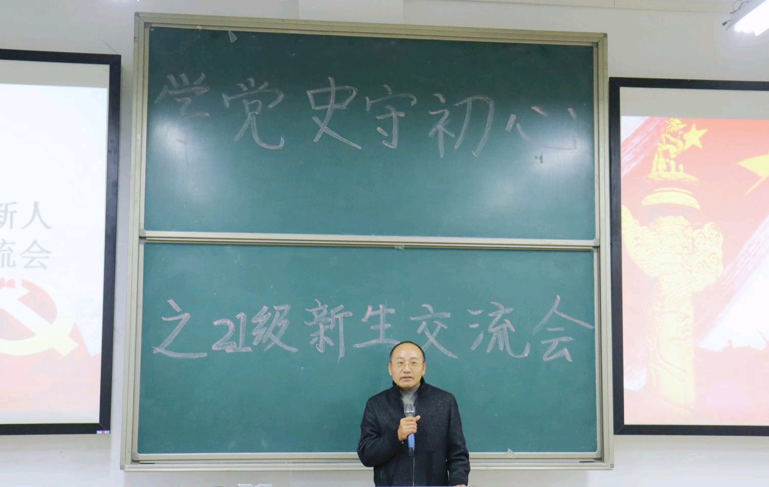 此次新生交流活动包含三个部分——“回望奋斗征程”、“体悟时代风采”、“畅想明日画卷”。在“回望奋斗征程”环节,罗望阳以PPT形式带领同学们回忆党的百年奋斗历程:中国共产党在面对“帝国主义、封建主义、官僚资本主义”这“三座大山”时挺身而出,挑起民族脊梁,团结亿万中国人民奋起抗争,以百折不挠的精神,建立了中华人民共和国。
