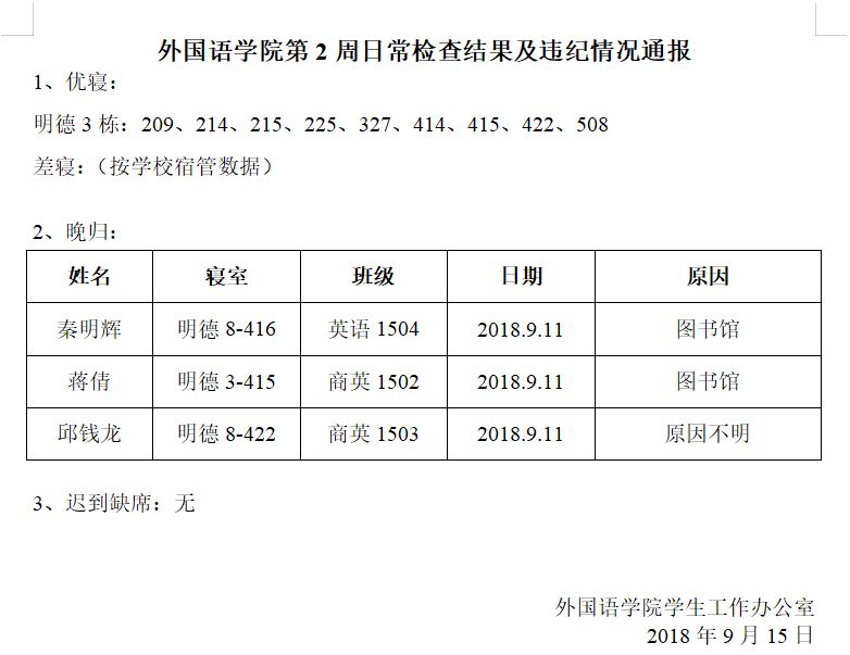 beats365唯一官方网站第2周日常检查结果及违纪情况通报