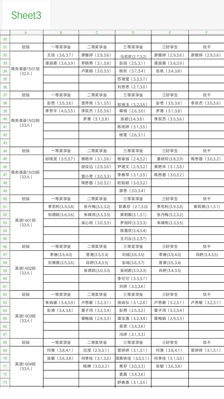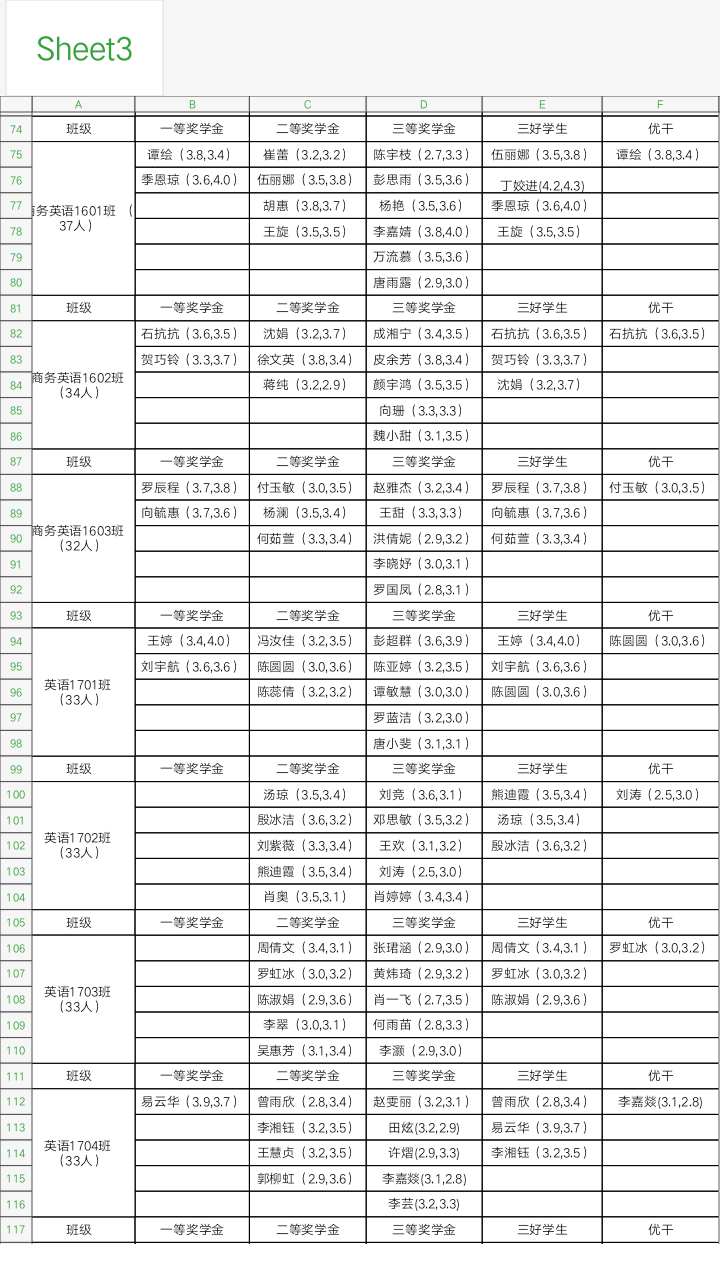 beats365唯一官方网站奖学金公示名单
