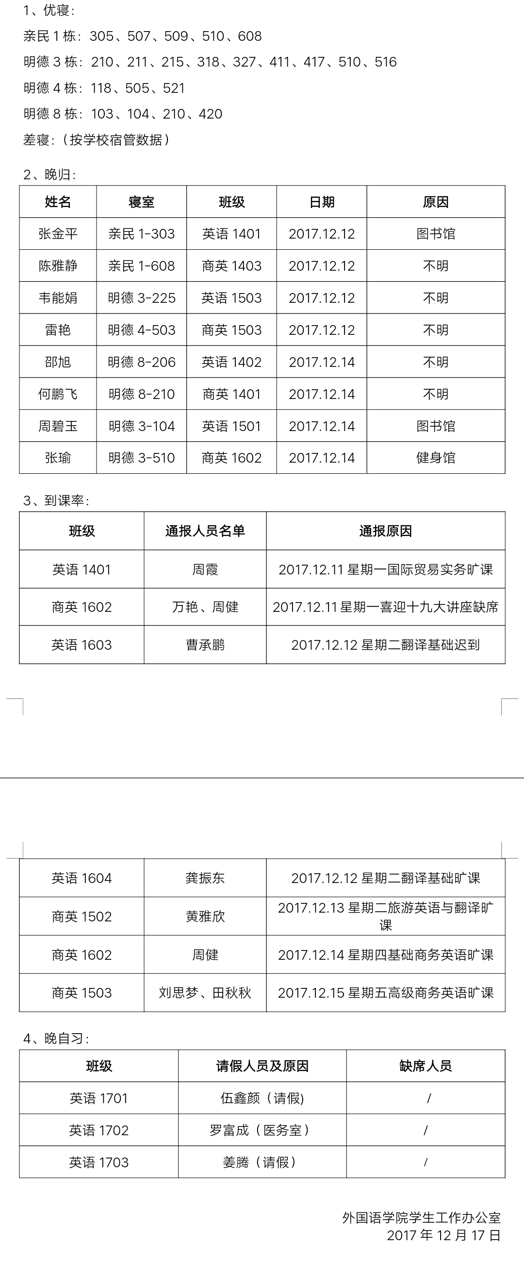 beats365唯一官方网站第15周日常检查结果及违纪情况通报