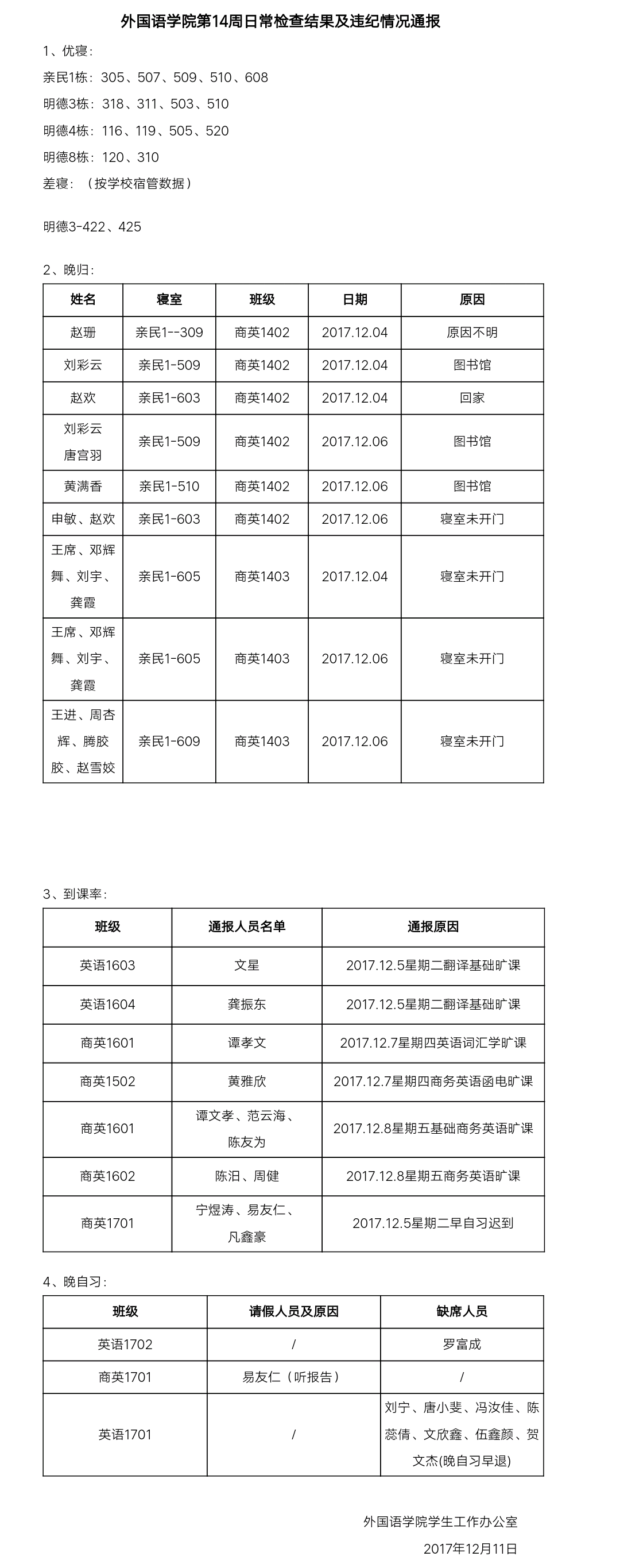 beats365唯一官方网站第14周日常检查结果及违纪情况通报