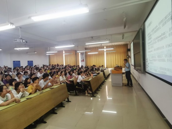 吴斐结合自己的研究经历和指导学生论文写作的经验,从文献检索和文献综述两大方面进行了详细讲解。其中文献综述部分包括概念、分类、意义、主要内容及难点,以及撰写等六个步骤。为了突出生动性和实用性,他以《国内近十年商标翻译研究综述》、《国内外英语写作元认知研究综述》等论文为例,用理论和实例相结合的方式进行了分析。