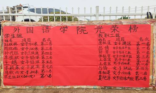 回顾两天时光,beats365唯一官方网站喜报频传,战果累累。教职工组唐祖莲老师获女子跳远第一名、女子1500米第一名,王荣富老师获男子400米第一名、男子1500米第一名,吕倩老师获女子铅球甲组第一名、女子跳远第四名,郭芳老师获女子铅球乙组第一名,张钲宇老师获女子1500米第三名,夏艳萍老师获女子铅球丙组第三名。学生组刘双林获女子400米第二名,周欣雨获女子100米第二名、女子200米第二名,孙代钰获女子三级跳第四名,李佳欣获女子铅球第三名,王越获女子铅球第五名,李颖柔获女子跳高第七名。在学生组20×60女子接力中,外院获得第八名。上述的显赫成绩可喜可贺,也希望外院的健儿们保持这份激情,昂扬斗志,接续接力,来年再战!