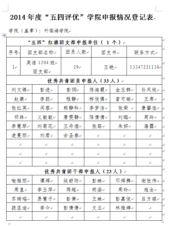 根据校团字【2015】2号文件精神,参照2014年度湖南工程学院“优秀共青团员”、“优秀共青团干部”、“五四红旗团支部”的评选条件,结合我院相关制度规定,经学办严格审核,确定推荐名单如下: