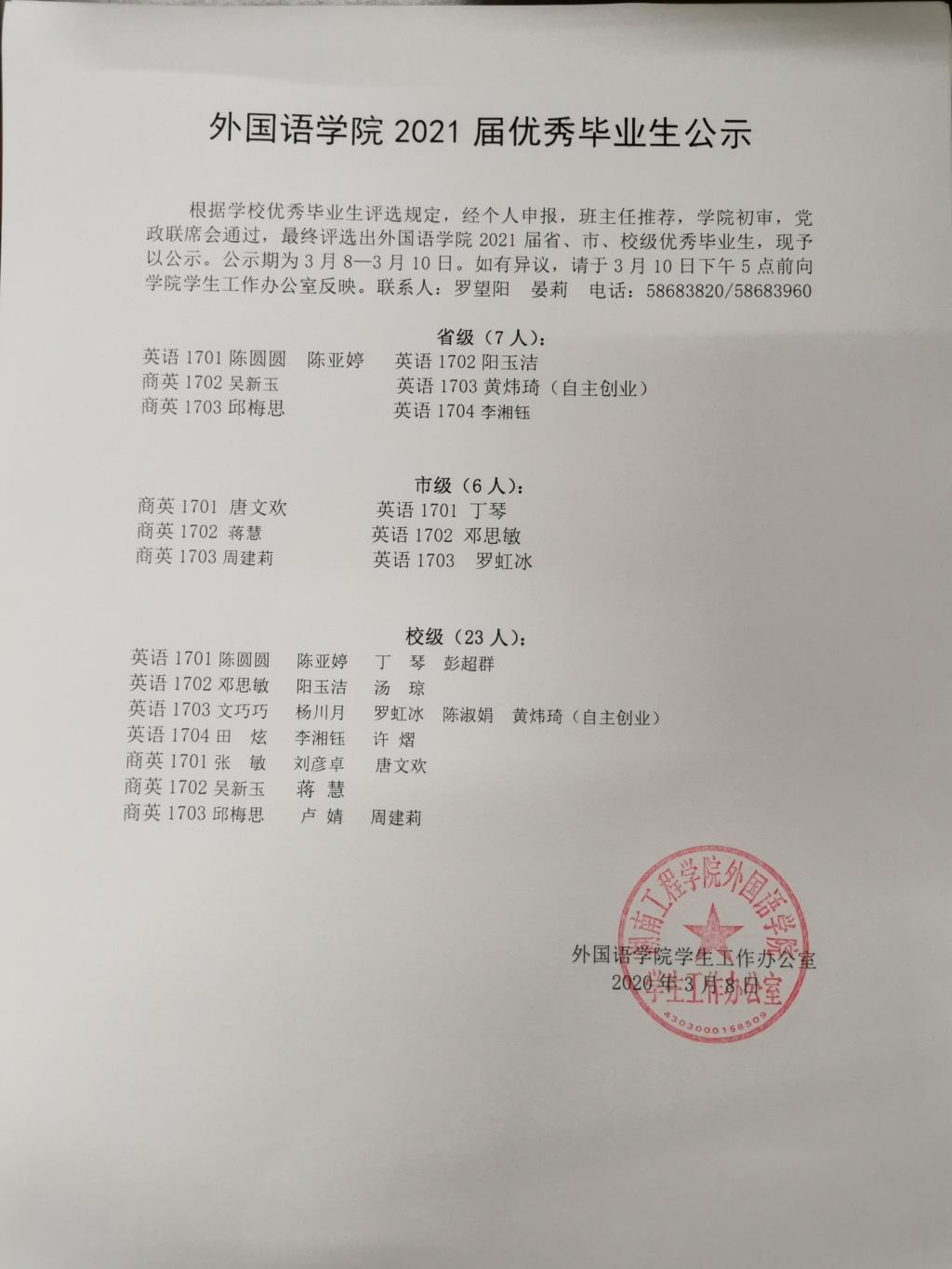 beats365唯一官方网站2021届优秀毕业生公示