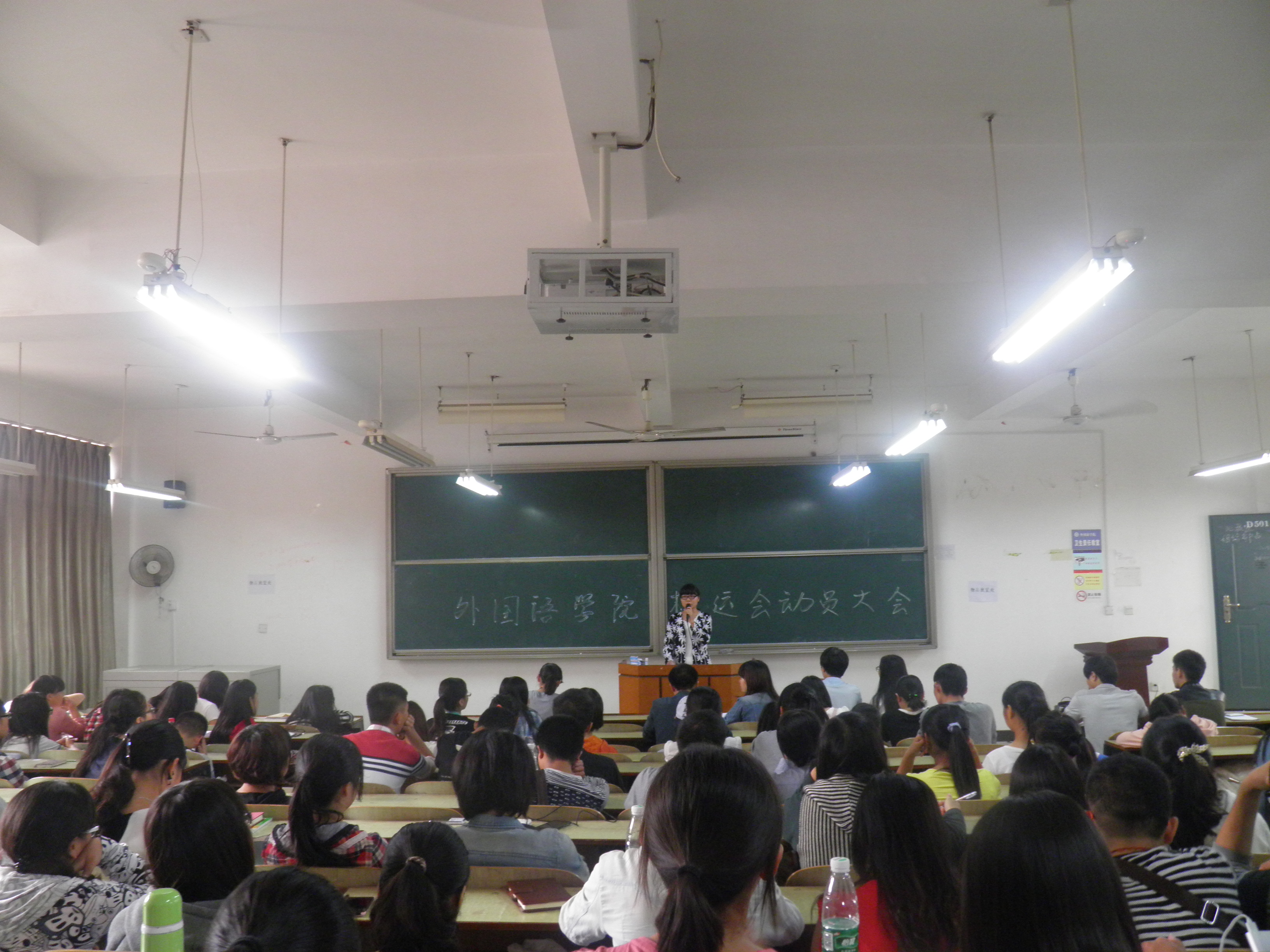 beats365唯一官方网站2014年校运会动员大会于10月28日12点30分,在新校区主教学楼D501成功举行。此次大会由黎亚男同学主持,出席本次大会的有院团总支书记蒋莉老师,团学会全体成员和参赛的运动健儿们。
