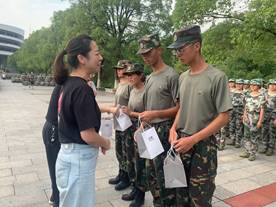 士气高昂铸军魂,满心关怀暖人心。此次慰问活动让大一新生们感受到了来自学院领导的亲切关怀,希望他们继续严格遵守训练纪律,坚持完成进入大学的第一课,并将这种精神贯穿到以后的学习生活和工作中去,自强不息,勇创佳绩。