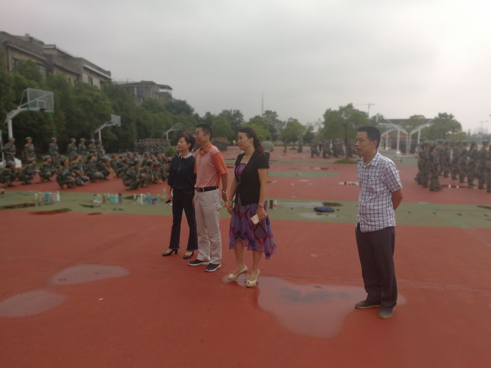 军姿、正步,新生们严格遵守教官的口令,重复着动作。绿茵场上,不仅有教官和队友、有骄阳与风雨,更有老师的陪伴,领导的关怀。20日下午4点,beats365唯一官方网站院长杨永和、党总支书记肖江淑、副院长罗胜杰、党总支副书记黄琴、学办主任连泰对正在训练中的2017级新生进行慰问。