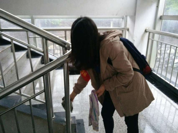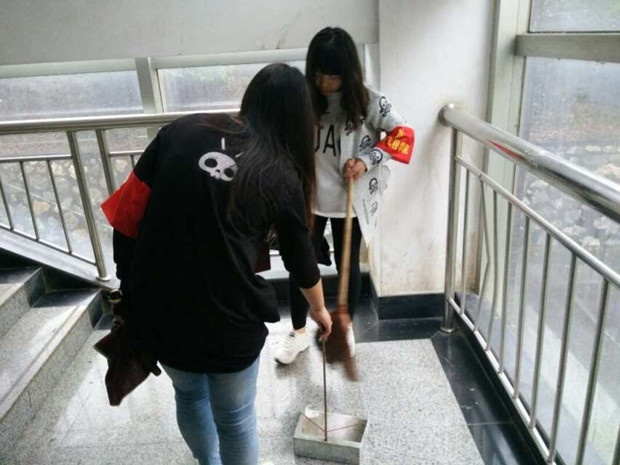 此次清扫的区域涵盖面较广,主要包括教学楼C栋内大厅窗台、各楼梯间扶手以及台阶。尽管天公不作美,整个下午大雨倾盆,但参与的同学仍旧准时到场,积极参与,绝不放过一处死角。在相关干部的组织下,同学们有条不紊、分工合作、团结一心,使得教学楼面貌焕然一新,角落的蜘蛛网、漆黑的墙壁、布满尘埃的楼梯间都被完全清扫,取而代之的是整洁的教学楼。