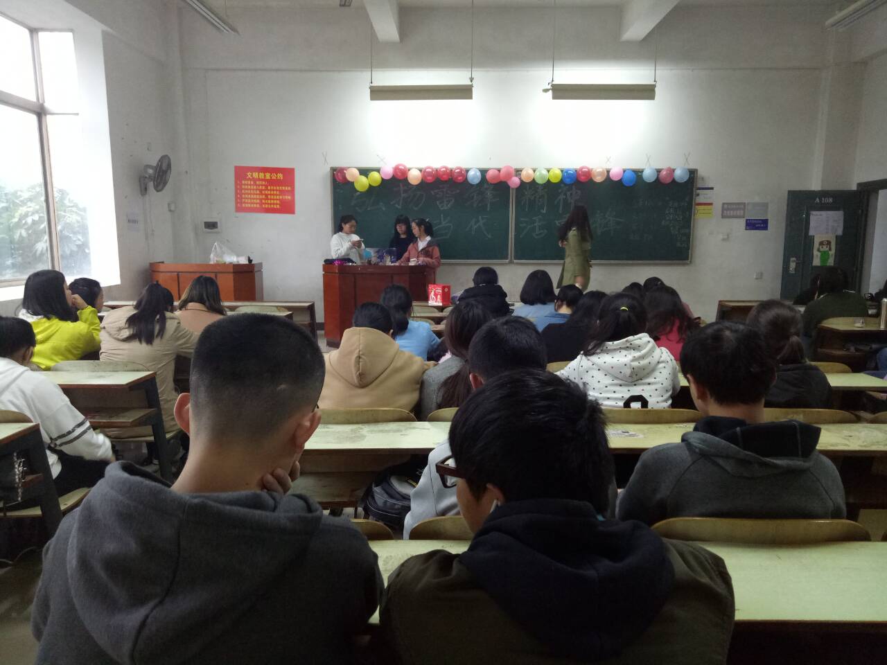 三月是学习雷锋精神活动月,而这次活动是一个崭新的开始。这次活动不仅仅弘扬了雷锋精神,让同学们争做时代的螺丝钉;而且进一步深化了雷锋精神,并赋之以时代感,让这种精神更好的融入生活和学习中,成为我们的日常,让雷锋精神的光茫照亮每个角落。