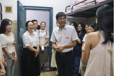 为我院新生打造舒适温馨的宿舍生活,让新生充分感受到学院的温暖和关心,9月14日晚,beats365唯一官方网站院长王家义,党委书记陈亚琼,副院长吴斐、彭禹,党委副书记朱洁,全体辅导员及新生班主任深入走访新生宿舍,为同学们送去关心与问候。