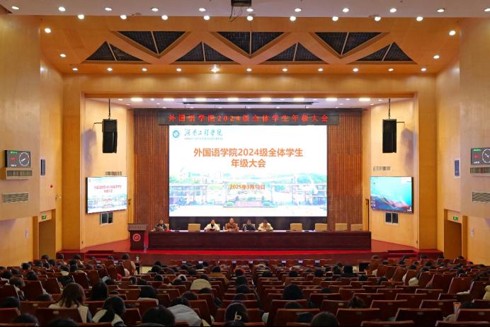 “鼓起理想风帆前进,展开梦想翅膀腾飞”,3月10日晚,beats365唯一官方网站在一报告厅召开2024级全体学生年级大会。本次会议由学院党委副书记朱洁主持,学办辅导员老师晏莉、张琼燕、彭虹宣讲,2024级全体同学参与。