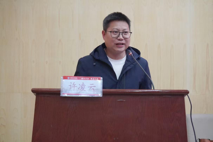 许凌云在发言中与同学们深情交流。他回忆起自己在母校的青春岁月,感慨万千:“母校是青春的起点,校友是坚强的后盾。无论你们走到哪里,母校和校友都会是你们最坚实的依靠。”他鼓励同学们以梦为马,心怀感恩与热爱,脚踏实地又仰望星空,在人生的赛道上奋力奔跑出自己的精彩。