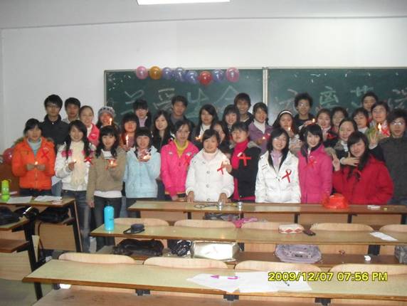 2009年12月7日晚7点,beats365唯一官方网站2008、2009级各班举行了一场以“珍爱生命,远离艾滋”为主题的团日活动,旨在提高同学们对艾滋病的认识并能有效地预防艾滋病的产生。