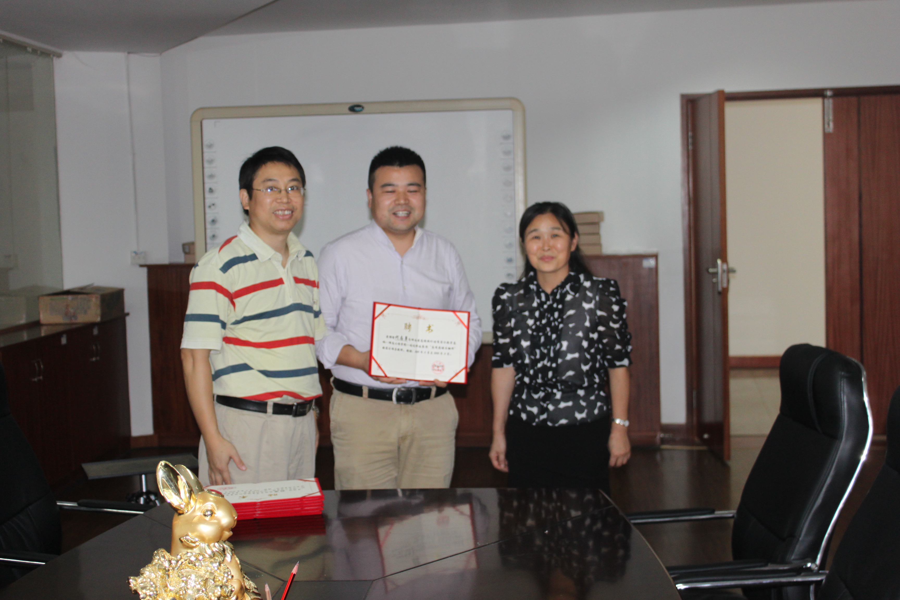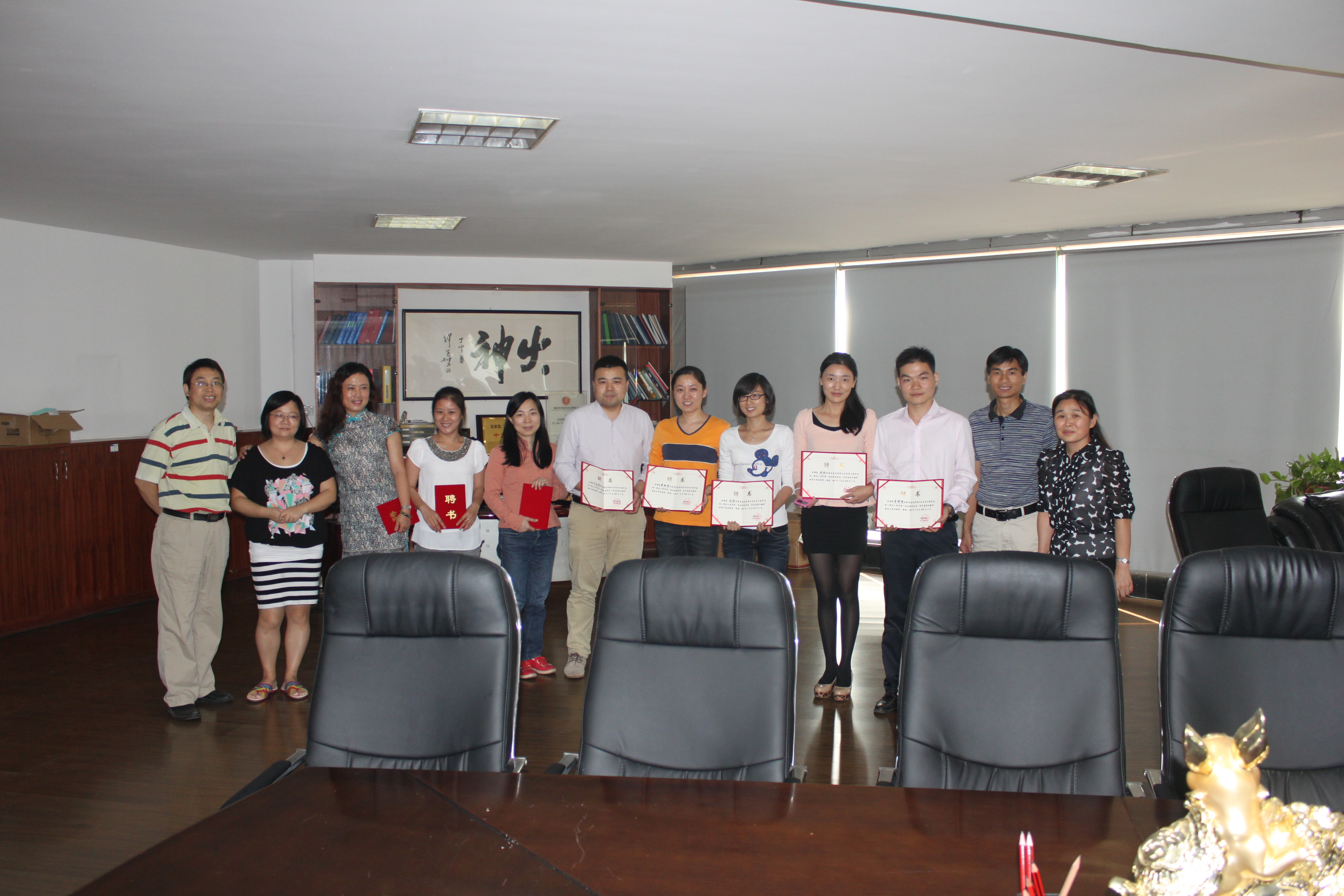 为了加强湖南省高校校外优秀实习教学基地---迅达科技集团“应用英语与翻译” 的建设、规范实践性教学环节和提高实践性教学环节的的效果,2013年10月10日下午,beats365唯一官方网站院长杨永和、副院长刘向红和王家义率商务英语专业教研室部分教师前往迅达科技集团股份有限公司为指导教师颁发了聘书。