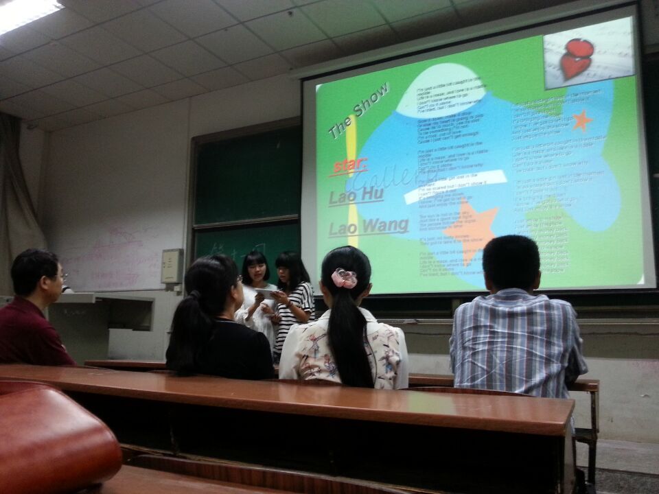 班陈欣刚和王佳琪主持,精心准备后的内容丰富多彩,全体同学共同参与,大家表演了吉他独奏、英文歌曲、诗歌朗诵、名言赏析、精彩游戏等节目,营造了一个浓厚的英语口语氛围,台上台下热烈互动。两位院领导对本次活动加以点评,给与了充分肯定和高度评价。本次活动不仅提高了同学们的英语学习兴趣,也给大家提供了一个展示英语口语的机会和舞台,既融洽了学习气氛,又锻炼了大家的胆量,英语知识的学以致用得以彰显。正如谢逸凡同学所说:“这次英语角活动打破了以前‘哑巴’英语的尴尬境地,提高了我们的英语学习兴趣,大家都愿意开口说英语了”。
