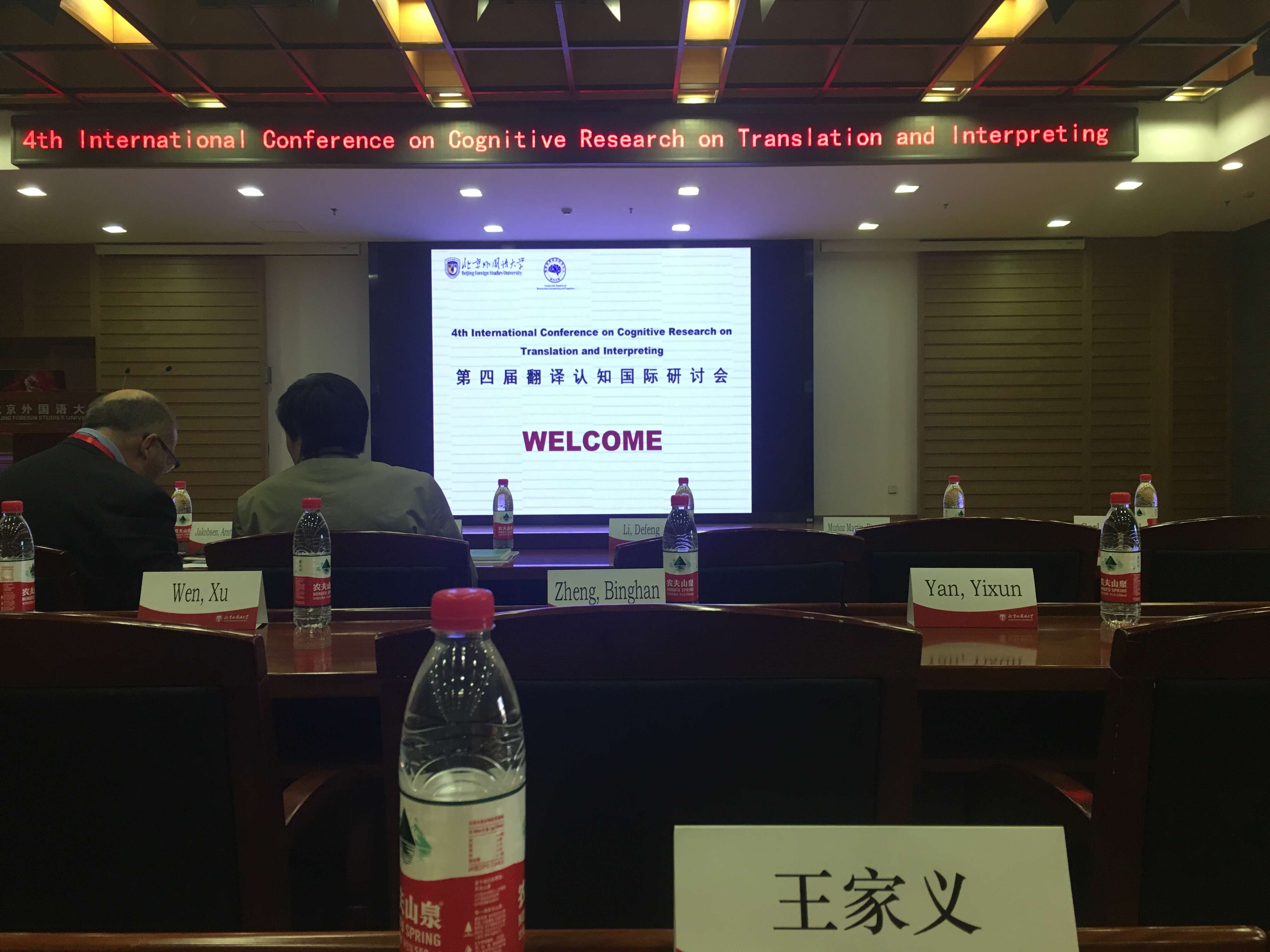 11月3日至4日,由北京外国语大学英语学院和澳门大学翻译传译认知研究中心共同举办的“第四届翻译认知国际研讨会”在北京外国语大学行政楼隆重举行。来自国内40多所知名院校以及英国、美国、日本、澳大利亚、西班牙、丹麦、瑞士、巴西、芬兰、波兰等10余个国家近90余位翻译领域专家学者参加会议。我院王家义副院长受邀参加了此次会议。