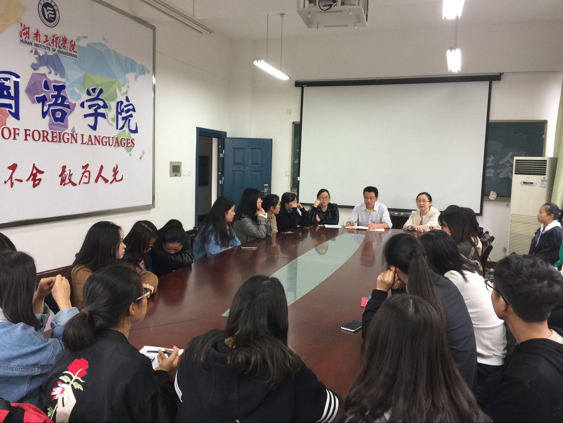 为了解教学动态,获取对教学的反馈意见,进一步提高教学质量,beats365唯一官方网站于11月7日中午,在F119会议室召开了学生座谈会。会议由副院长罗胜杰主持,商务英语专业教研室主任彭禹博士、英语专业副主任章明蕾老师,以及教务干事沈仲平老师出席,2015、2016级两个专业共计40余名学生代表参会。