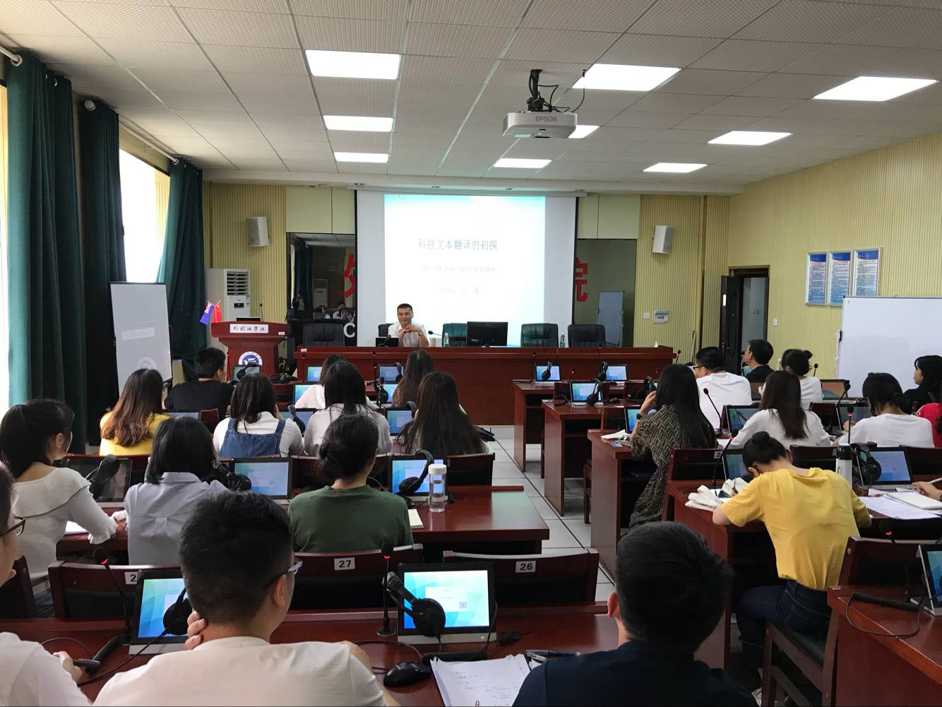 2018年5月22日下午三点至四点半,湘潭永达机械制造有限公司总经理刘雄应邀莅临我校开展主题为“科技文本翻译初探”的讲座。讲座由beats365唯一官方网站刘肯红老师主持,唐心洁、章明蕾老师以及英语15级翻译方向专业实习学生参与。