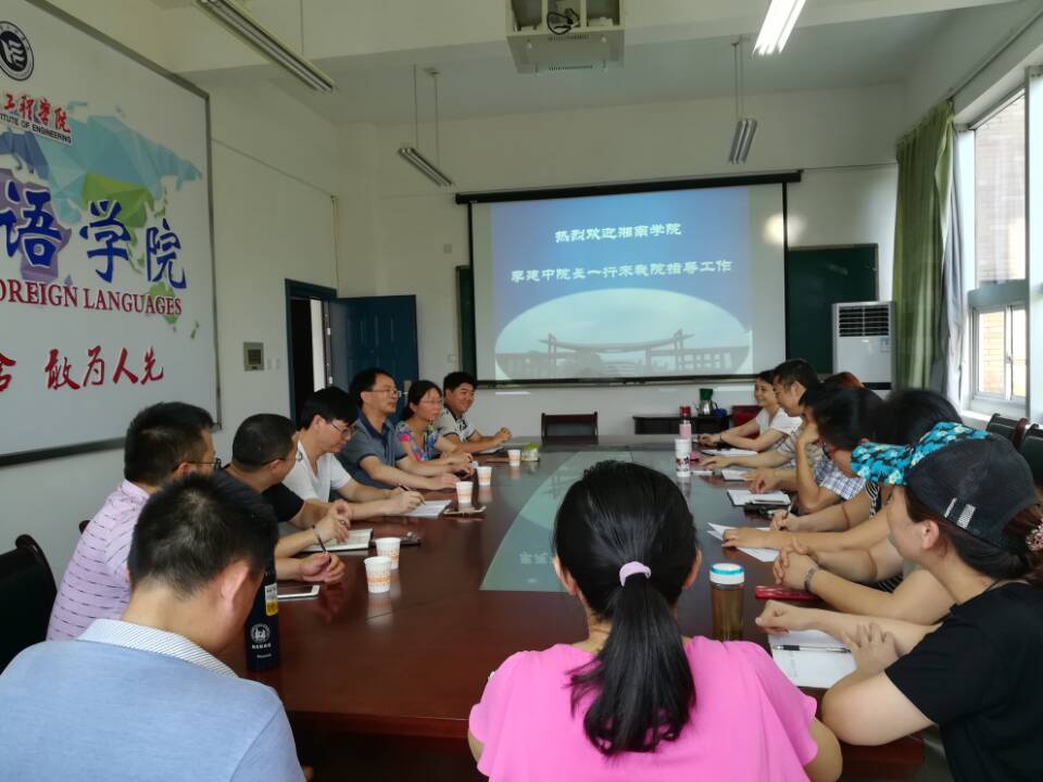 6月25日下午,湘南学院beats365唯一官方网站副院长李建中等一行5人来我院调研,院领导及教研室主任在F-119会议室热情接待了客人,双方就本科教学审核评估工作、学科与专业建设,以及教学改革等问题进行了交流探讨。