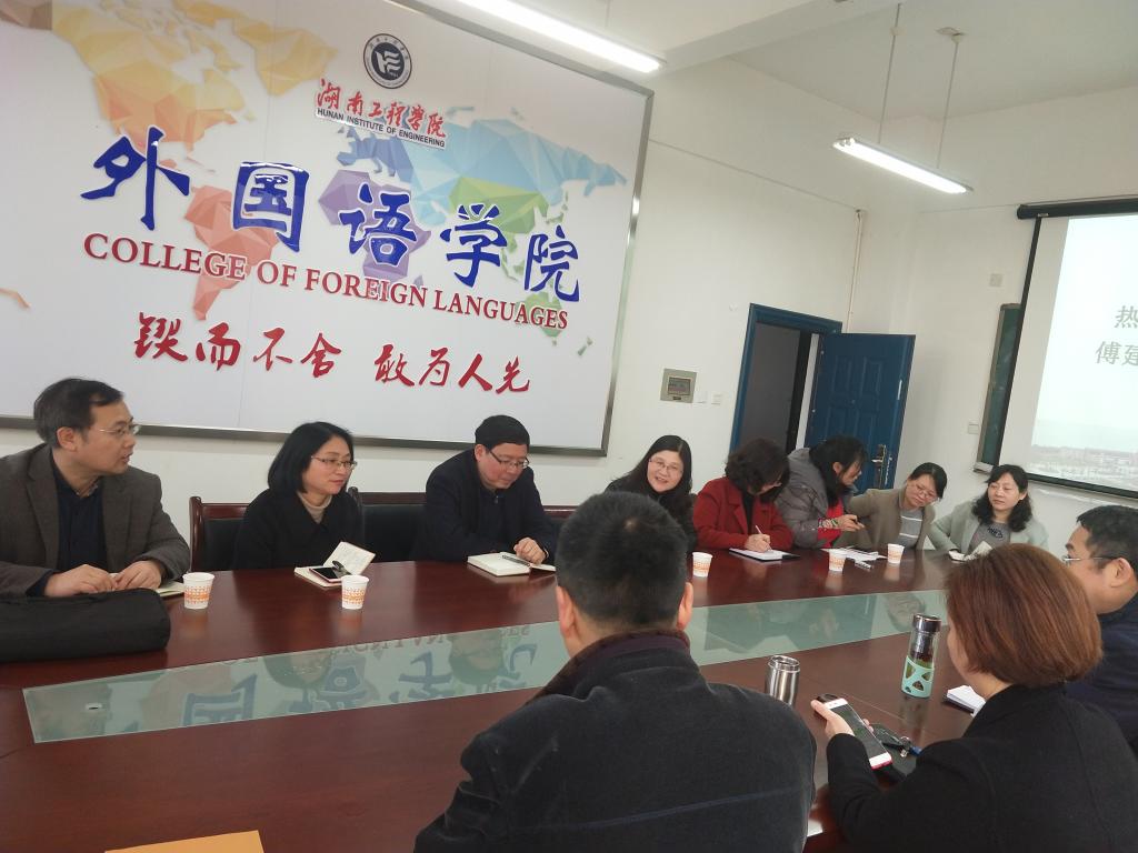 2019年3月11日,湖南城市学院人文学院院长傅建安教授一行来到beats365唯一官方网站,进行商务英语专业建设专题交流。beats365唯一官方网站杨永和与班子成员,以及教研室负责人在F-119热情接待客人来访。