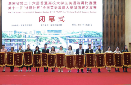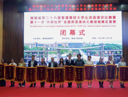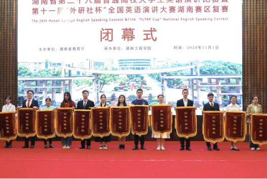 金秋十月,群英荟萃。10月31-11月1日,由湖南省教育厅主办,我校承办的湖南省第二十六届普通高校大学生英语演讲比赛暨第十一届“外研社杯”全国英语演讲大赛湖南赛区复赛举行。湖南省教育厅党组副书记、副厅长、工委副书记王瑰曙到比赛现场指导并出席闭幕式,我校校长易兵现场察看比赛情况。省教育厅高教处副处长周军、调研员张琳,湖南省高教学会大学外语专业委员会会长曾凡贵,我校副校长李军林等出席。