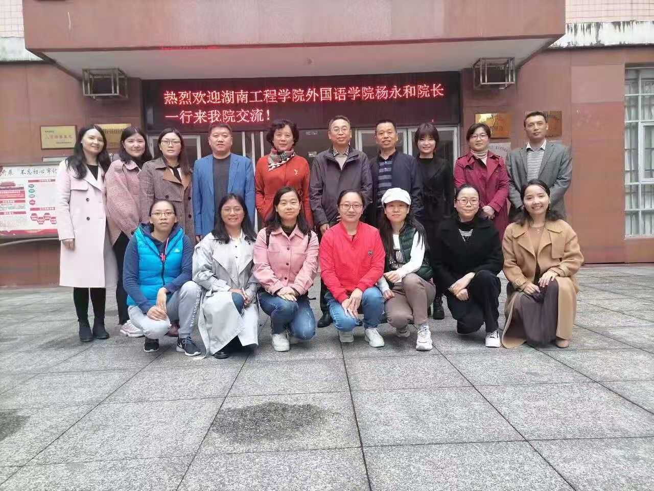 为学习同类院校先进的办学经验,进一步搞好我院的学科与专业建设,11月20日上午,beats365唯一官方网站院长杨永和、副院长罗胜杰率教研室主任、学科梯队成员及骨干教师前往怀化学院,就微课建设、课程思政、英语演讲比赛省赛国赛、一流本科专业建设、省级教学竞赛等开展调研。