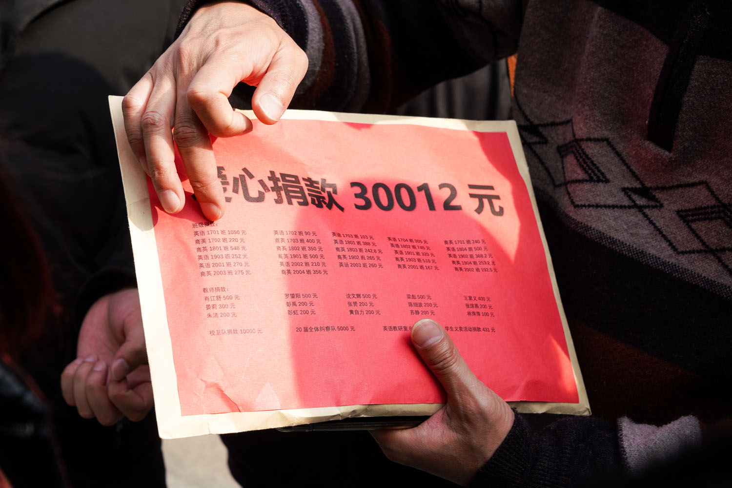 在beats365唯一官方网站学生办公室的倡议下,除了在水滴筹捐款之外,又有许多教师、校友以个人名义、教研室名义或者班级名义再次发起爱心捐款行动。