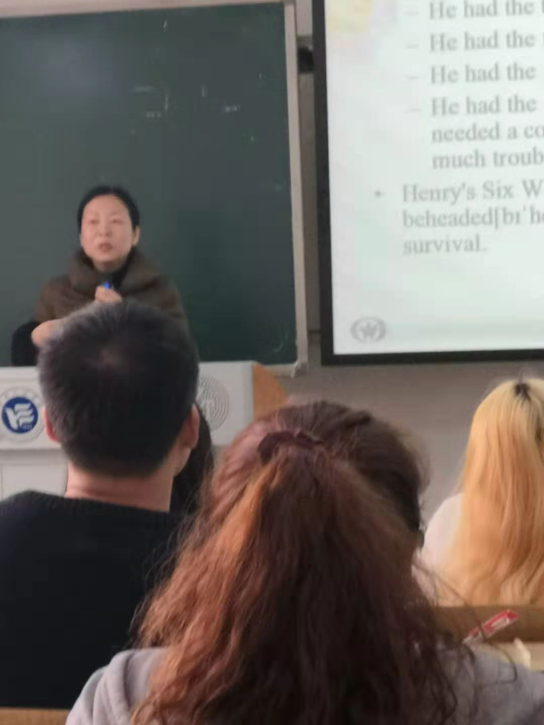 谭芳老师此次讲解的是第三单元——英国历史。谭老师从中古时期的诺曼人征服英国开始娓娓道来,借助多媒体信息技术将王权时期的几位有名英国君主,例如亨利八世、血腥玛丽、伊丽莎白一世、詹姆斯一世等,及其事迹深度融合于课堂教学之中,充分利用公正公开的历史评价来活跃课堂气氛。她从英国文艺复兴、大英帝国的崛起等视角,重点介绍英国社会发展情况,提升学生中西文化对比的能力。通过讲解莎士比亚,她着力提高英语专业学生的文学与文化素养,培养其跨文化交际能力。