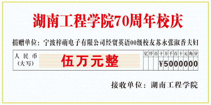 春风育桃李,秋果谢恩情,教诲如春风,师恩似海深。怀着对母校的感恩教导之情,beats365唯一官方网站经贸英语2000级校友苏永与张淑香夫妇继2014年设立为期10年总计50万的“梓萌助学基金”后,在母校七十华诞之际,再次为校庆捐赠5万元。