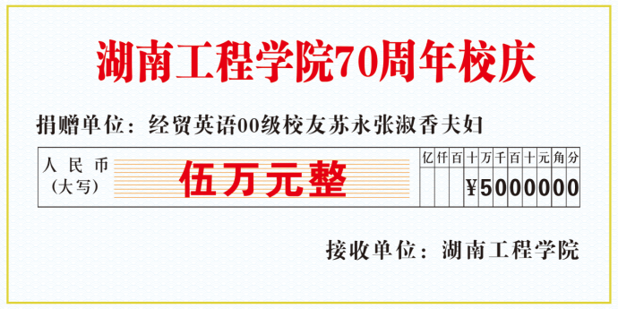 七十年薪火相传,七十载峥嵘岁月。优秀校友苏永、张淑香夫妇希望同学们铭记“锲而不舍 敢为人先”的校训;铭记“以生为本 止于至善”的院训。用青春去热爱所学,用热血去落实所用,回馈母校,回报社会,将温暖相传。
