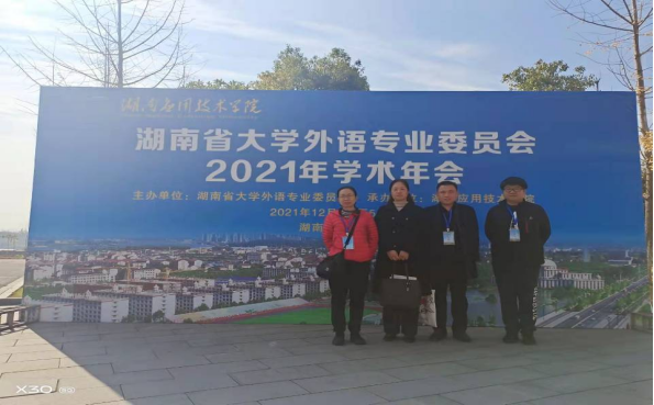 湖南省大学外语专业委员会2021年学术年会于12月3-5日在常德举行,由湖南应用技术学院承办。本年会旨在总结我省各高校大学外语教学改革的成效和经验,进一步推动我省大学英语教学改革,特别是课程思政教学。来自湖南省内近40所高校应邀参加了会议。我院教学副院长吴斐率大学英语骨干教师李娟、魏殚艺、刘丽珍出席。