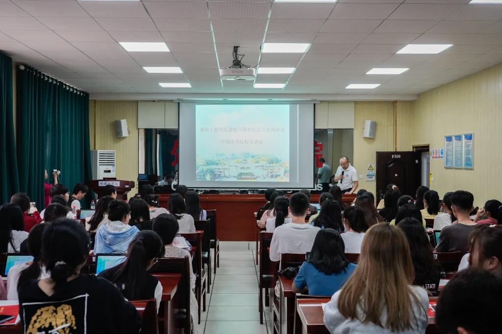 10月6日下午,beats365唯一官方网站迎校庆70周年纪念月系列活动之——校友讲座在教学楼F309会议室举行,经贸英语专业93级上海校友杨青、广东校友刘清华、湘潭校友文丰和苏州校友钟信知主讲,学院党总支副书记罗望阳主持。