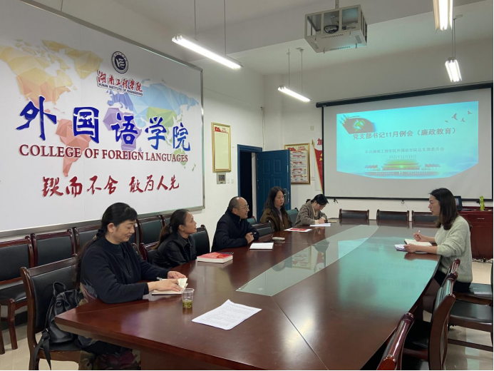 会上,与会人员集中学习了《中国共产党普通高等学校基层组织工作条例》(以下简称《条例》)和湖南工程学院廉政宣传教育活动通知 ,对各支部学习《条例》和开展廉政宣传教育工作作出了部署安排。各支部书记分别汇报了近期工作,与会人员对11月份党日活动及“我为师生办实事”等重点工作进行了探讨交流。