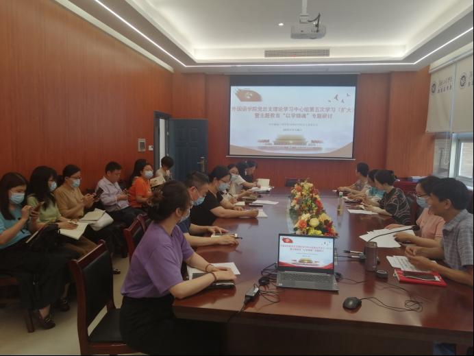 5 月 26日,beats365唯一官方网站党总支理论学习中心组开展了第5次集中学习暨主题教育“以学铸魂”专题研讨会,全体教工党员参加会议,会议由学院党总支书记陈亚琼主持。