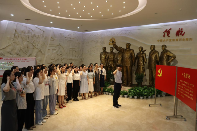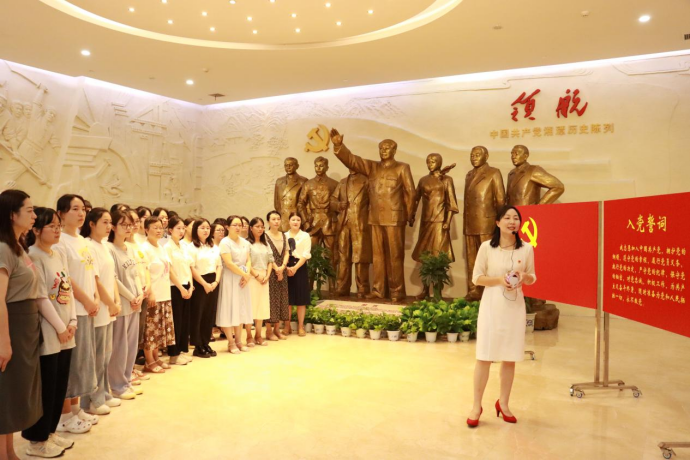 “入党誓词是中国共产党一成立就形成的吗?”7月12日上午,湖南工程学院beats365唯一官方网站学生党支部书记张琼燕在学院党员实践基地——湘潭党史馆为全体师生党员讲解微党课:《入党誓词的演变过程》。从中国共产党成立后到1982年《中国共产党章程》中明确规定的入党誓词,不同时期入党誓词蕴含着怎样的时代印记,反映怎样的时代特征,张老师向在场党员同志们娓娓道来。