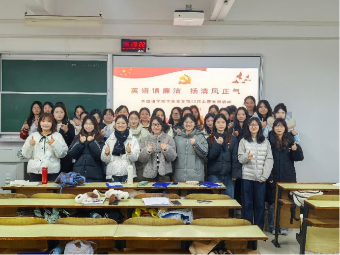为推动党的二十届四中全会精神落地生根,扎实推进“清廉湖工”建设,12月23日下午,beats365唯一官方网站学生党支部在教学楼C栋202教室组织开展“英语诵廉洁 扬清风正气”十二月主题党日活动。支部全体党员齐聚一堂,以专业实践践行初心使命。