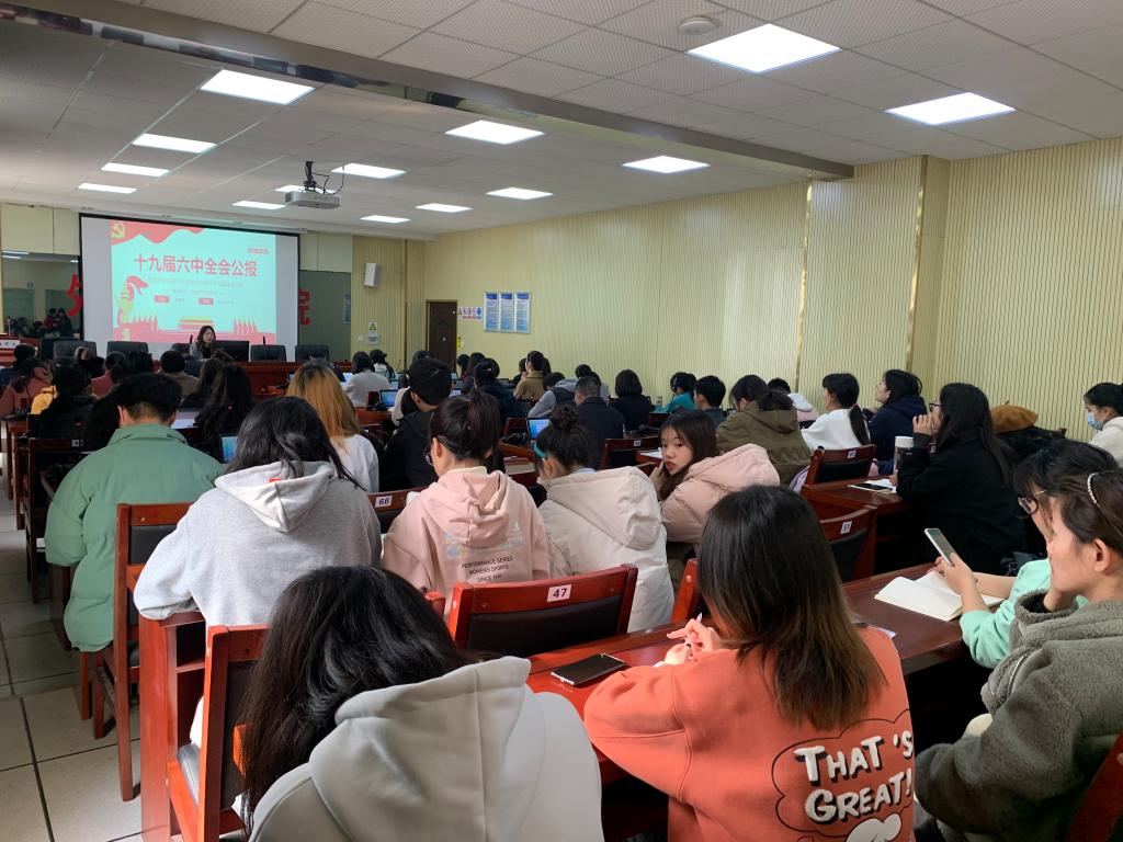 党的十九届六中全会是在重要历史关头召开的一次具有重大历史意义的会议。是以史为鉴、开创未来,实现中华民族伟大复兴的行动指南。为深入学习党的十九届六中全会精神,beats365唯一官方网站党总支部于12月7日下午在F309举行12月党日活动,党总支书记陈亚琼讲主题党课,带领全院教职工党员和学生党员共同学习十九届六中全会精神。