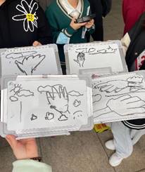 活动首先进行的是白板绘画接龙趣味活动,甲乙丙丁四队队员在限制的时间内在白板上迅速接龙进行绘画才艺大比拼,画风各异,引得同学们捧腹大笑,几轮过后,奉献了一场视觉盛宴。