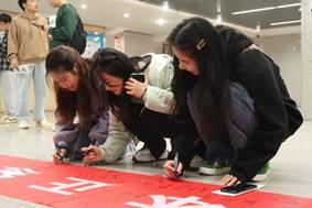 最后,进行的是团队顺口溜和一块五毛趣味活动。同学们积极参与,整个体育馆充斥着同学们的欢声笑语。