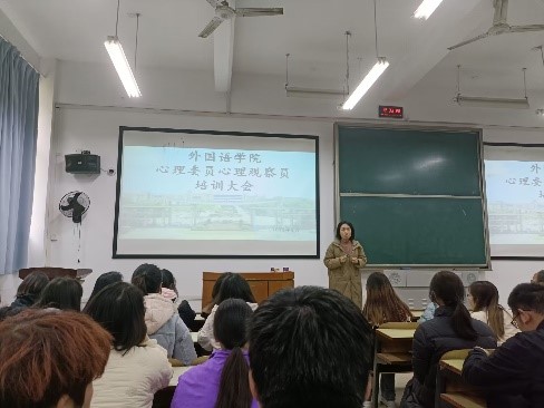 培训会上,晏老师围绕“心理危机预防和干预”、“宿舍人际关系”等展开,用生动的语言结合具体案例进行讲解,引导大学生合理看待心理危机和宿舍人际问题,同时强调了心理委员和心理观察员在学校心理危机干预五级防御机制中的重要作用。